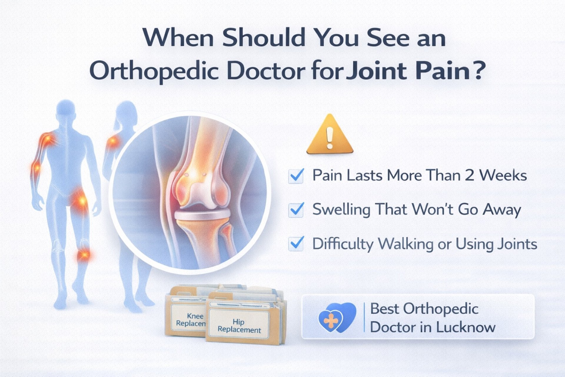 These signs often point to structural damage, cartilage loss, or joint degeneration that requires professional diagnosis and treatment by the Best Orthopedic Doctor in Lucknow.